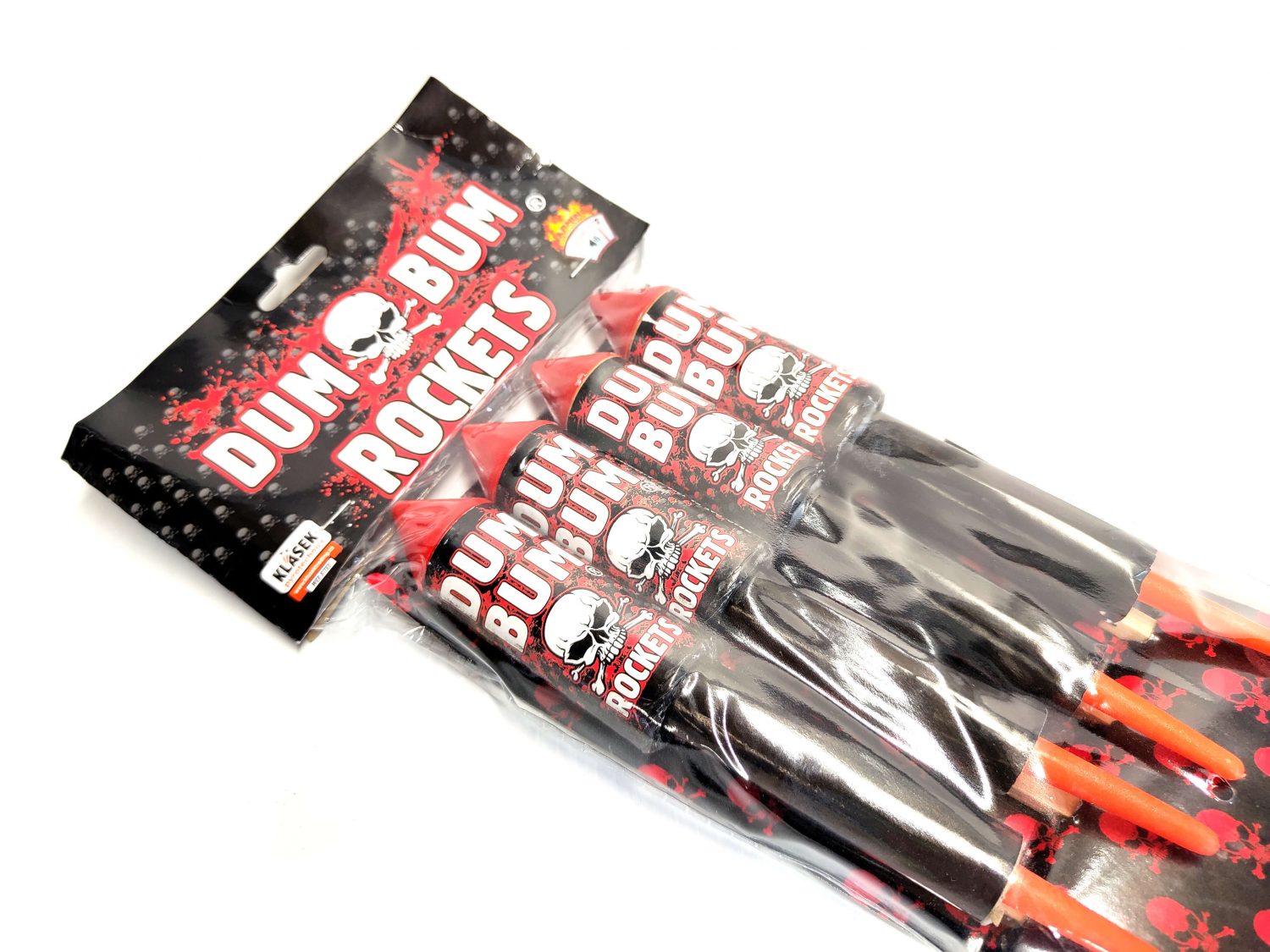 4er Sortiment Dum Bum Rockets von Klasek Trading in der F3 Version mit 40g NEM. Sehr laute Blitzknall Raketen!