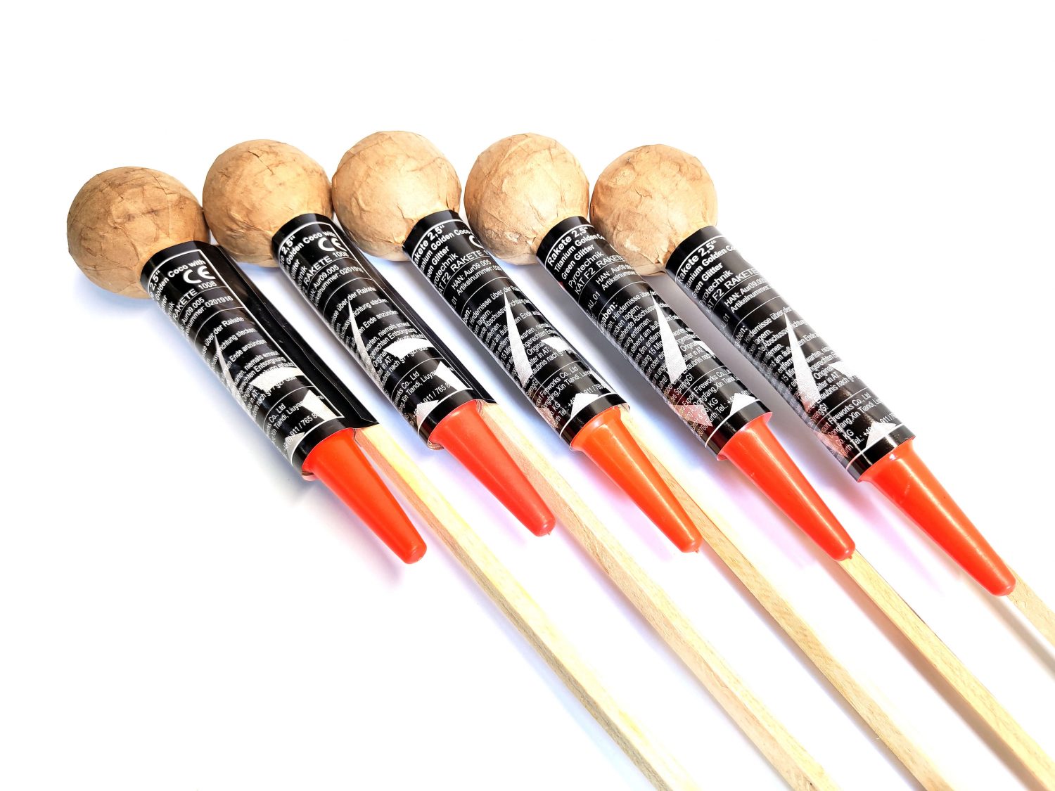 Schöne Kugelkopf Rakete von Startrade mit einem Kaliber von 65mm und dem Effekt Golden Glitter Willow with Red Dahlia.